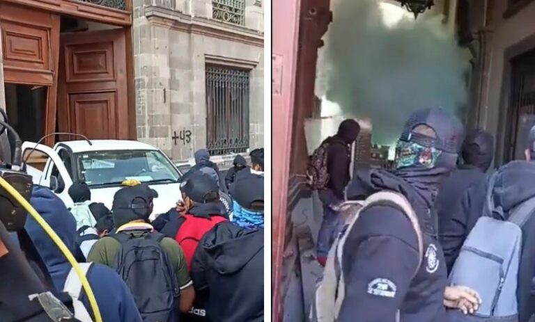 Sin embargo, su intento fue resistido por las fuerzas de seguridad, que respondieron con gases pimienta para contener la situación. Los manifestantes, en su mayoría familiares y amigos de los desaparecidos, se mantuvieron firmes en su búsqueda de justicia y respuestas sobre el paradero de los estudiantes desaparecidos hace más de seis años.