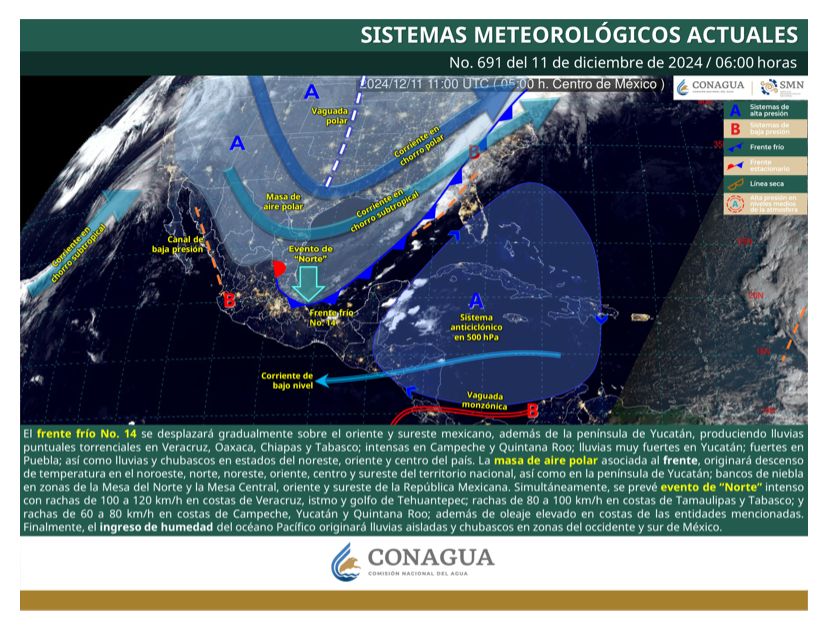 Se exhorta a la población a tomar las precauciones necesarias, mantenerse atenta a los avisos emitidos por el Servicio Meteorológico Nacional y seguir las indicaciones de las autoridades correspondientes.