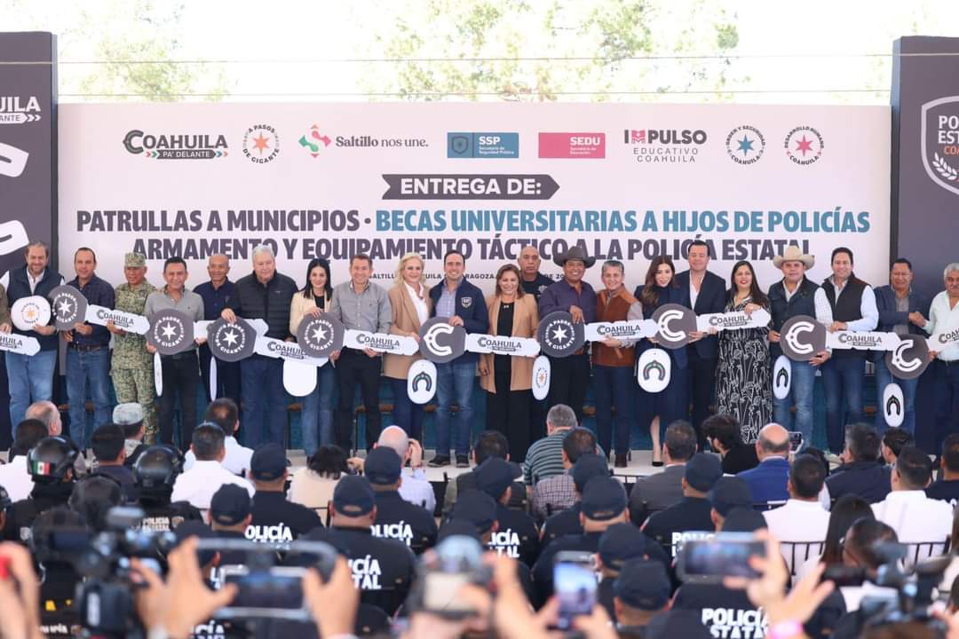 En un esfuerzo por consolidar la seguridad en el estado, el gobernador Manolo Jiménez Salinas encabezó la entrega de 63 patrullas a diversos municipios, junto con 300 armas cortas, 500 chalecos balísticos y 347 becas universitarias destinadas a hijos de policías estatales y elementos de la Fiscalía.