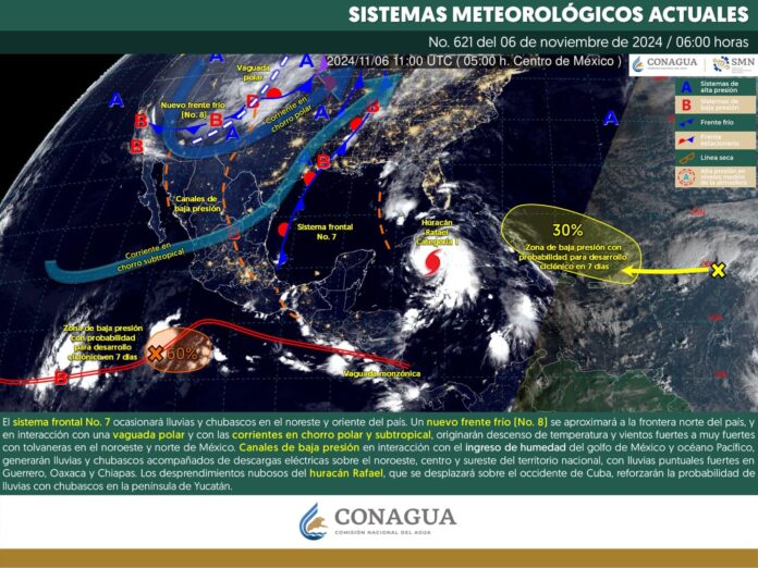 El Servicio Meteorológico Nacional prevé lluvias con acumulaciones de hasta 50 mm, vientos con rachas de 60 a 80 km/h, y la posibilidad de granizo y descargas eléctricas. Las autoridades advierten de posibles encharcamientos, inundaciones y el aumento en el nivel de ríos y arroyos.